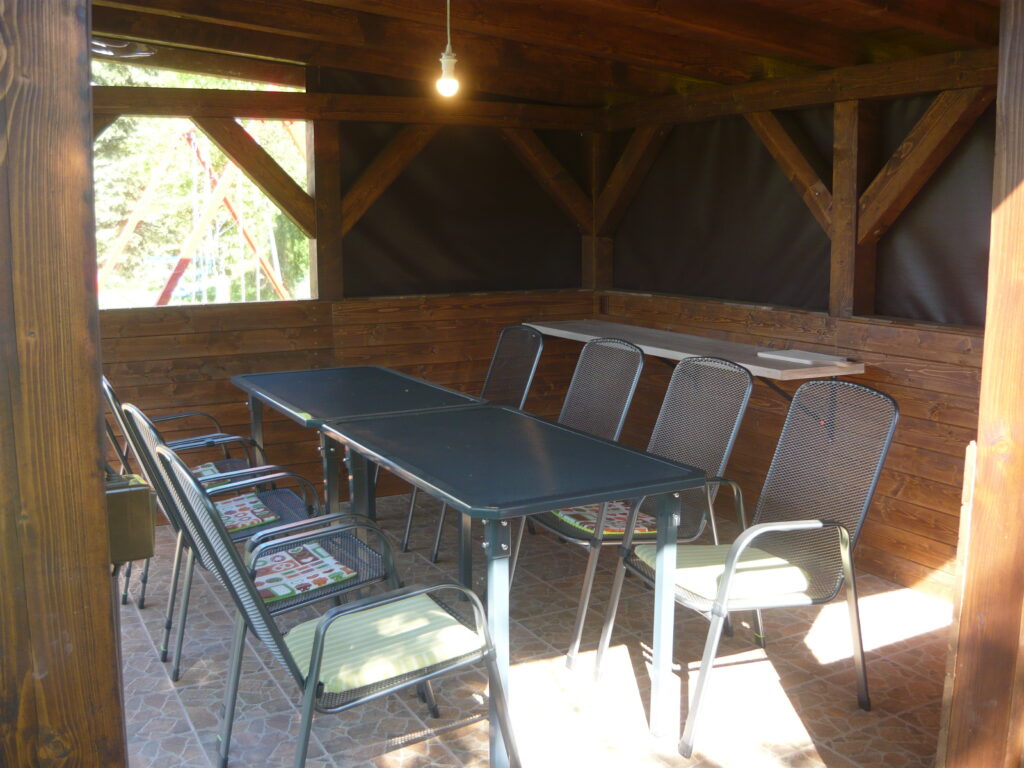 ▸ Venkovní posezení s grilem je ideální pro večerní pohodu s rodinou či přáteli.